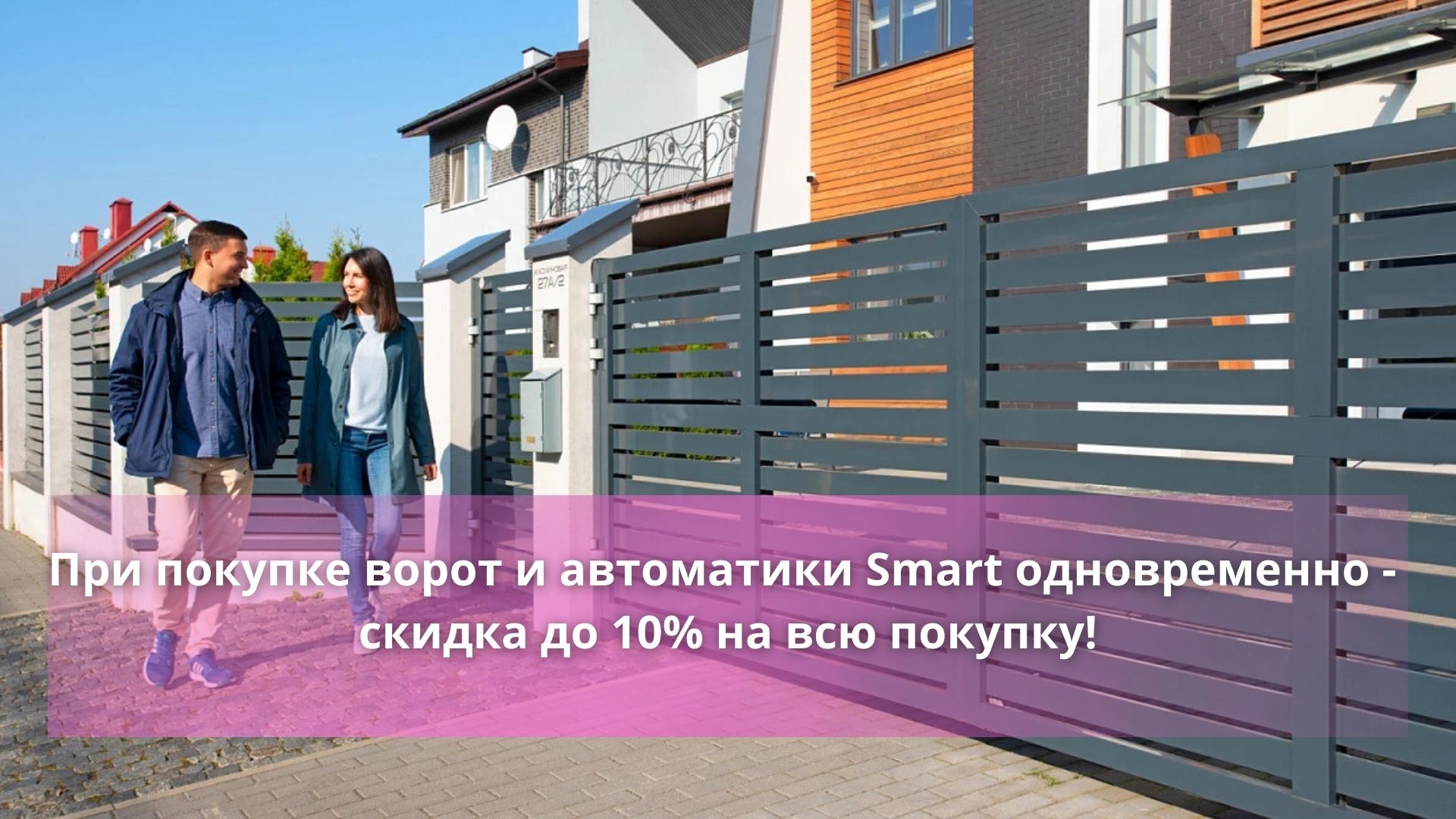 ▌ Скидка 10% Максимальная экономия предусмотрена для заказчиков наиболее полного комплекта продукции: откатные ворота с калиткой, ограждениями площадью (минимум 7 м²), системой автоматического открывания Smart и возможностью удаленного управления через модуль Wi-Fi.