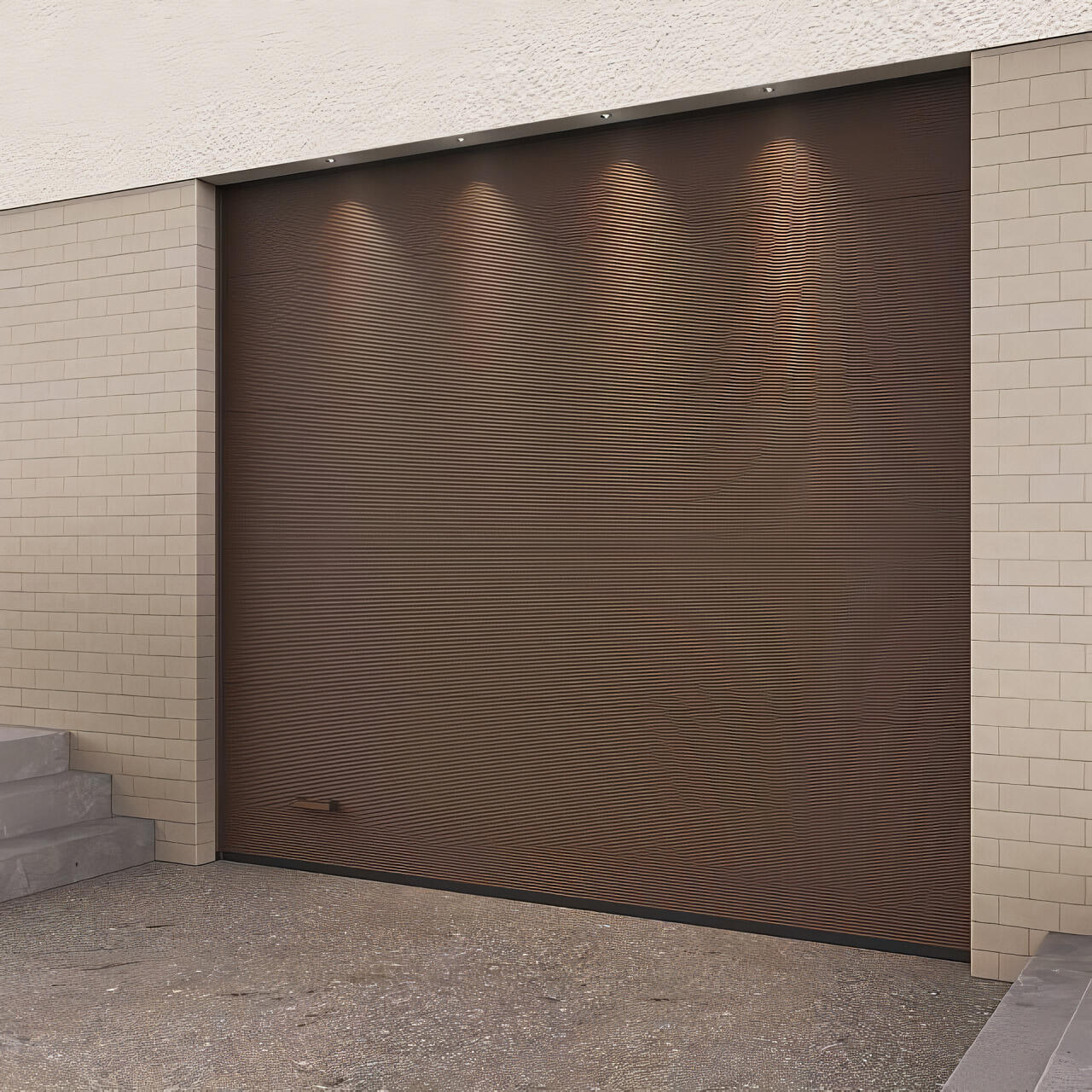 для отдельного входа-выхода. Дверь гармонично сочетается с гаражными воротами, придавая фасаду дома завершенный вид